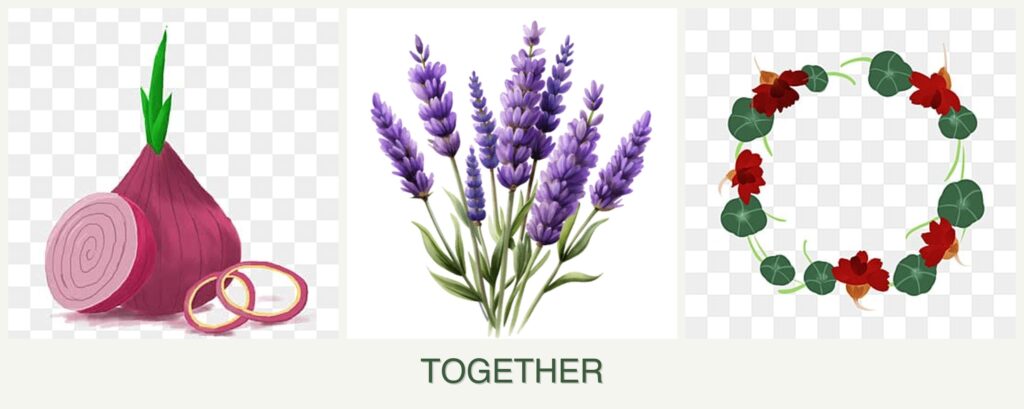 - Pest Control: Onions can repel aphids and other pests, which benefits both lavender and nasturtiums.