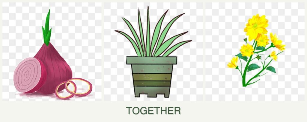 Planting onions, lemongrass, and calendula together offers several benefits: