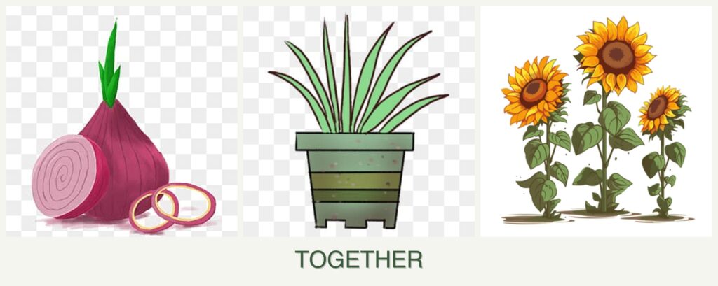 - Pest Repellent Properties: Onions can deter aphids and other pests that might affect sunflowers and lemongrass.