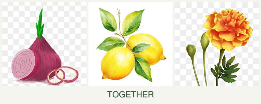- Timing: Plant onions and marigolds in early spring, while lemon trees can be planted in late spring or early summer.