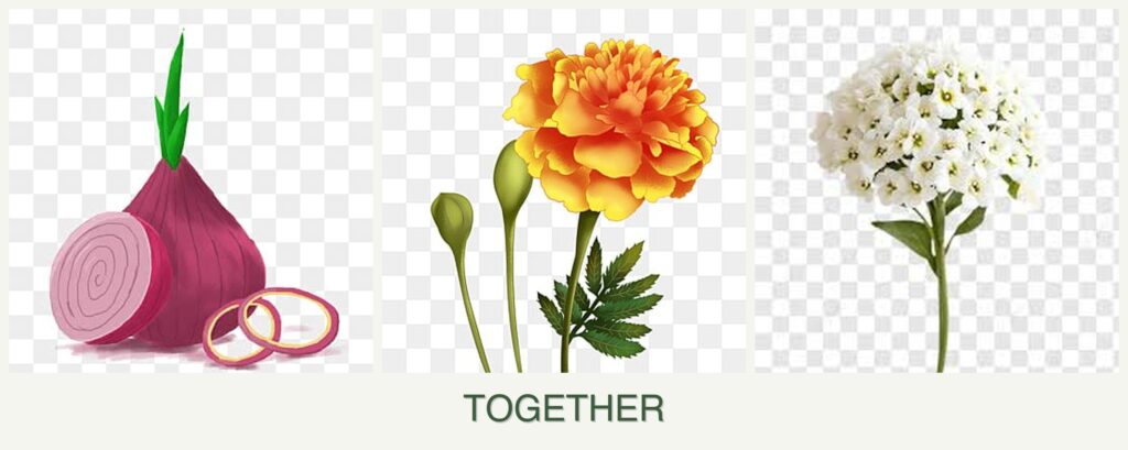 - Timing: Plant onions in early spring, marigolds after the last frost, and alyssum in early spring or fall.