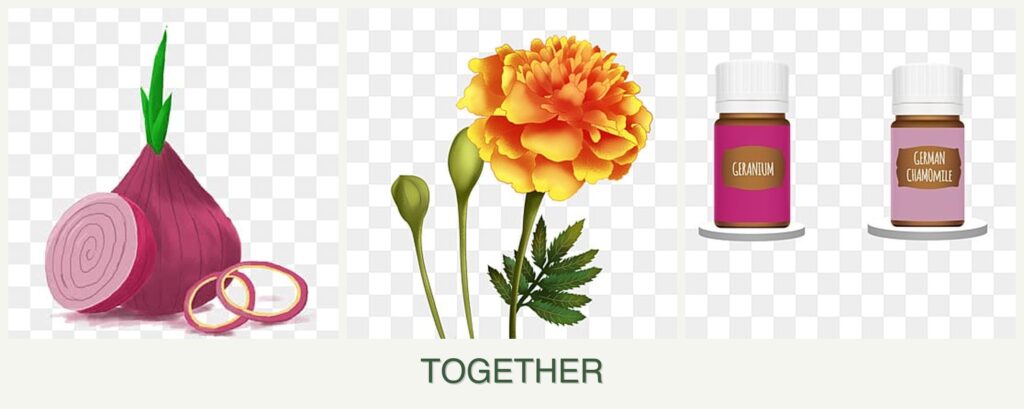 - Growth Requirements: Onions, marigolds, and geraniums thrive in similar conditions, preferring full sun and well-drained soil.