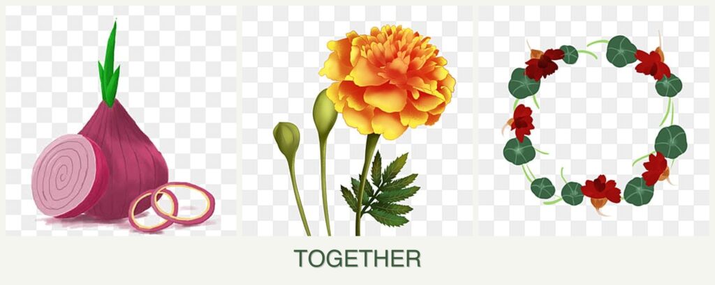 Planting onions, marigolds, and nasturtiums together offers several benefits:
