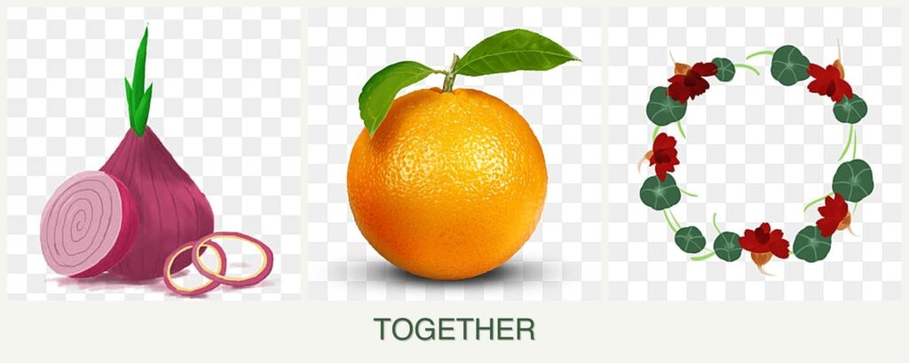 Planting onions, oranges, and nasturtiums together offers several advantages: