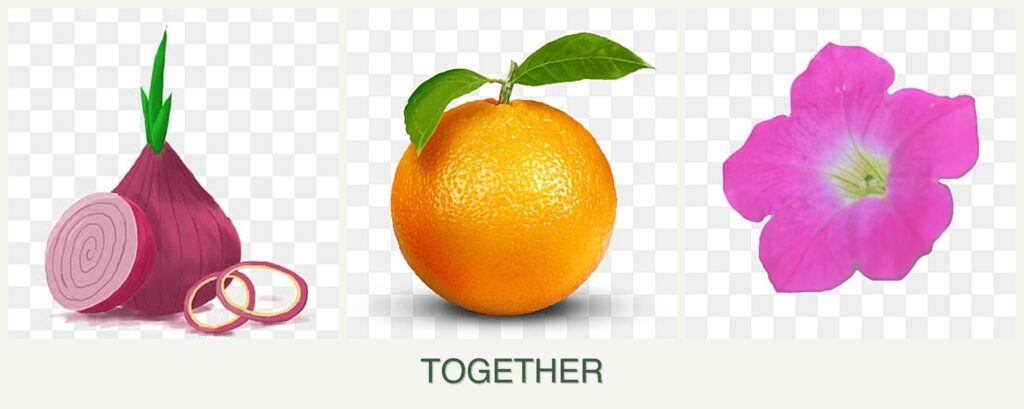 Can onions, oranges, and petunias be planted together?