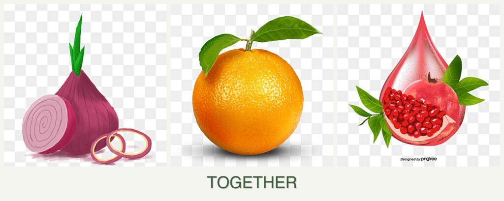 While planting onions, oranges, and pomegranates together isn’t ideal, there are some benefits to consider if space allows for separate areas: