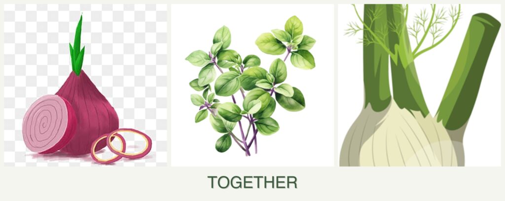 - Companion Plants: Basil and tomatoes are good companions for oregano and onions but should be planted away from fennel.