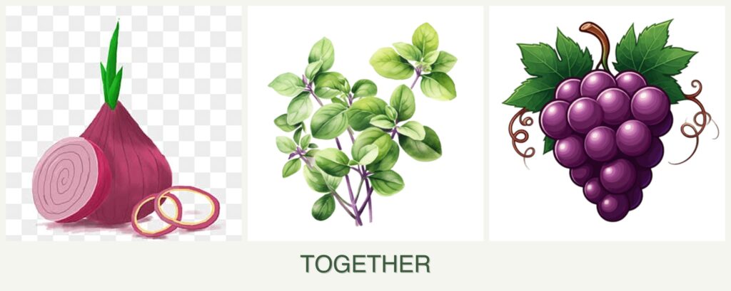 - Competition for Resources: Grapes’ extensive root systems can outcompete onions and oregano for nutrients.