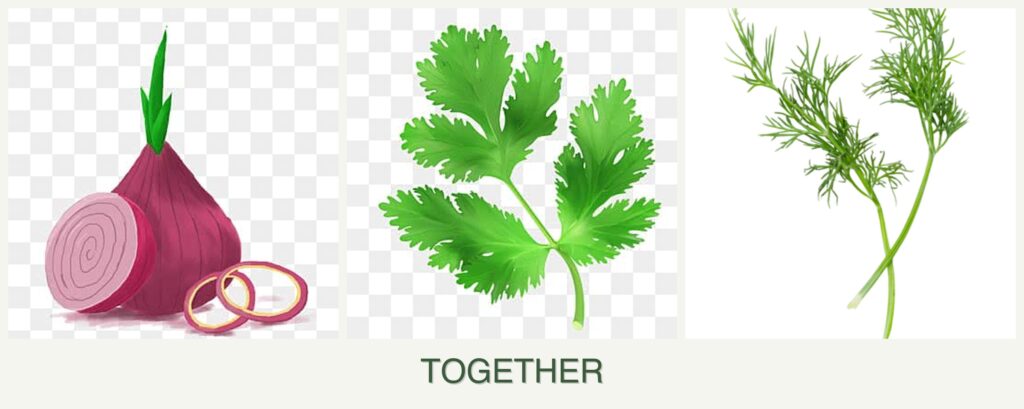 - Growth Requirements: All three plants prefer similar soil conditions and sunlight exposure. Onions, parsley, and dill thrive in full sun and well-drained soil.