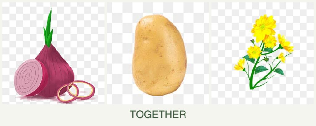 - Growth Requirements: Onions and potatoes prefer full sun, while calendula can tolerate partial shade. All three require well-drained soil.