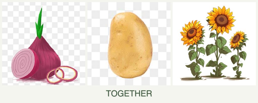 - Growth Requirements: Onions and potatoes prefer cool weather, while sunflowers thrive in warmer conditions.