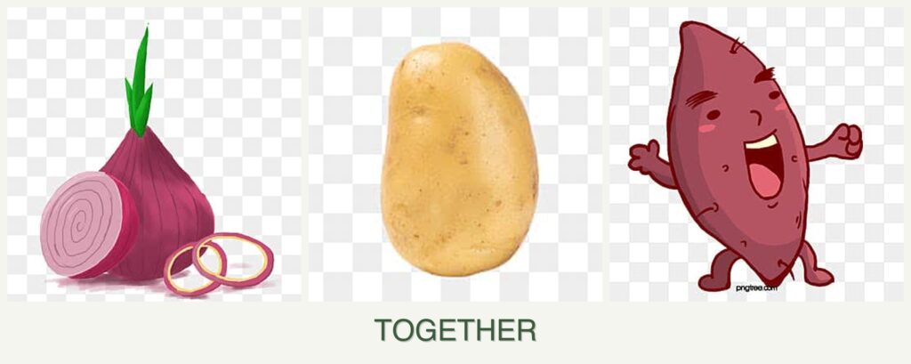 Nutrient Needs: Potatoes and sweet potatoes are heavy feeders, requiring nutrient-rich soil, which can lead to competition. Onions, being lighter feeders, might suffer if planted too close.