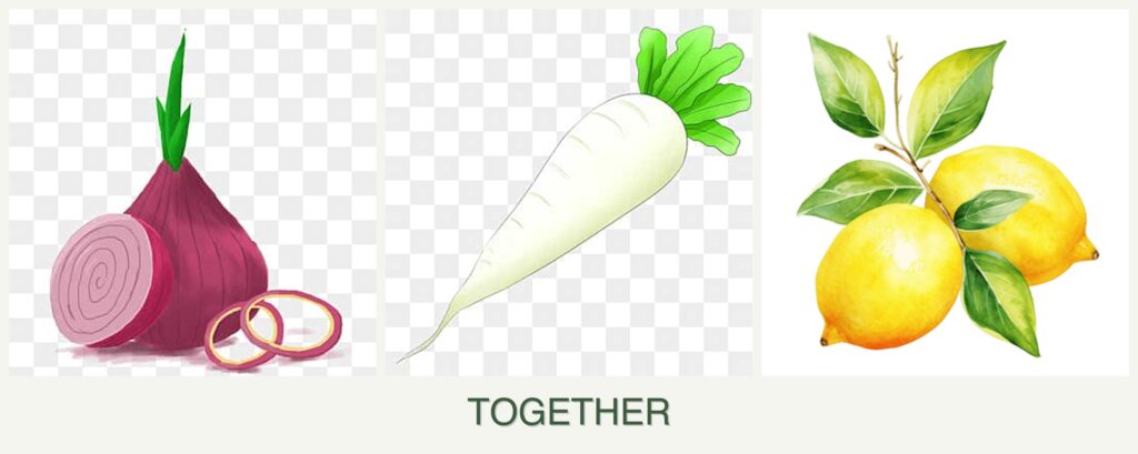 - Separate Planting Areas: Grow onions and radishes together and keep lemons in a separate area.