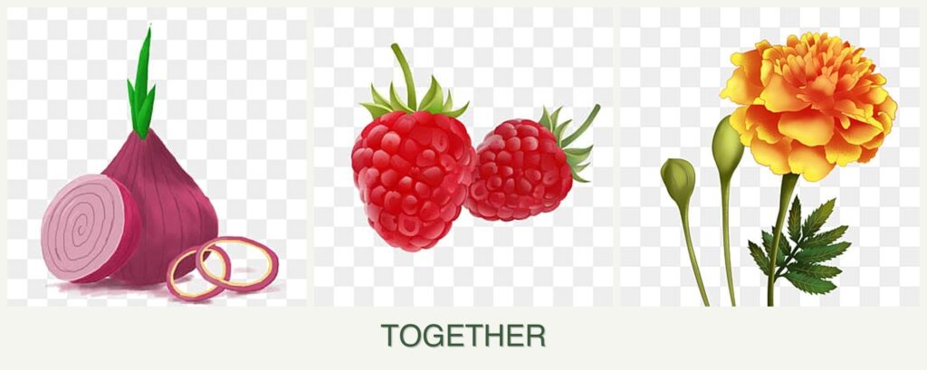 Can you plant onions, raspberries and marigolds together?