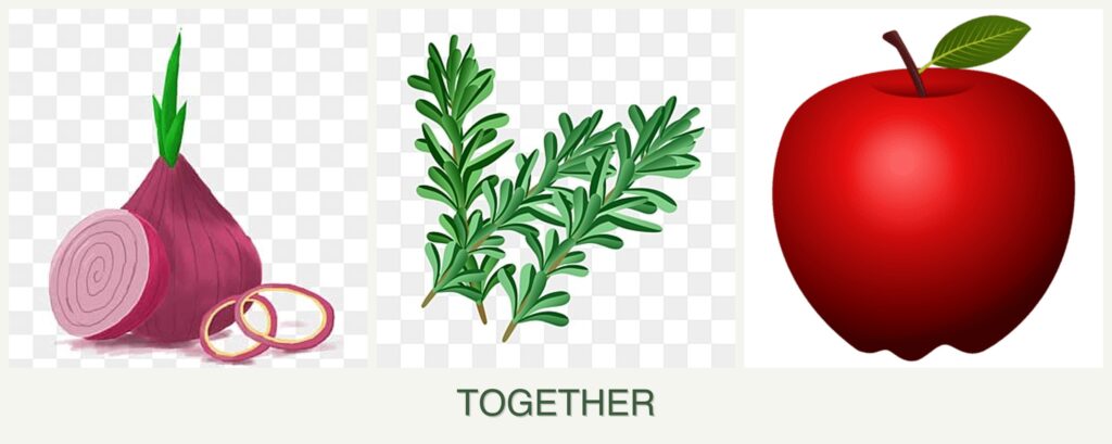 - Pest Repellent Properties: Onions and rosemary can help deter some pests from apples.
