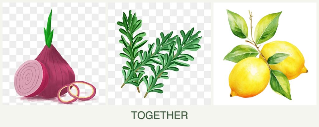 - Pest Control: Onions can deter pests that might affect rosemary and lemons.
