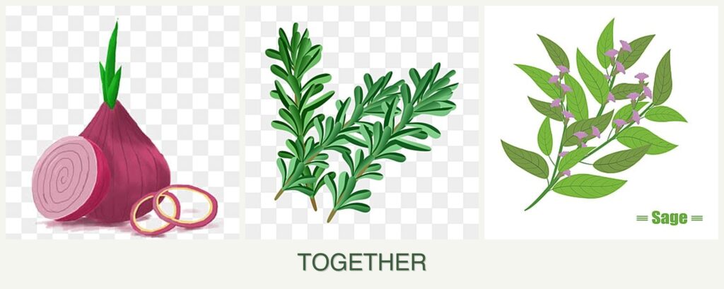 Planting onions, rosemary, and sage together offers several advantages: