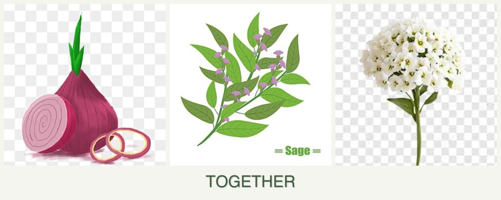 Planting onions, sage, and alyssum together offers numerous benefits: