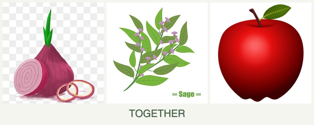 - Pest Control: Onions and sage can repel pests that commonly affect apple trees, such as aphids and codling moths.