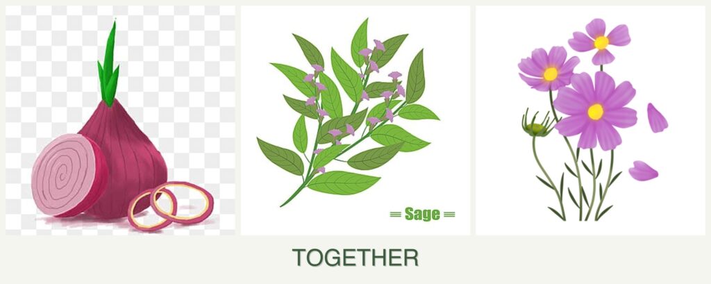 - Pest Repellent Properties: Onions and sage can deter aphids and other pests, protecting cosmos.