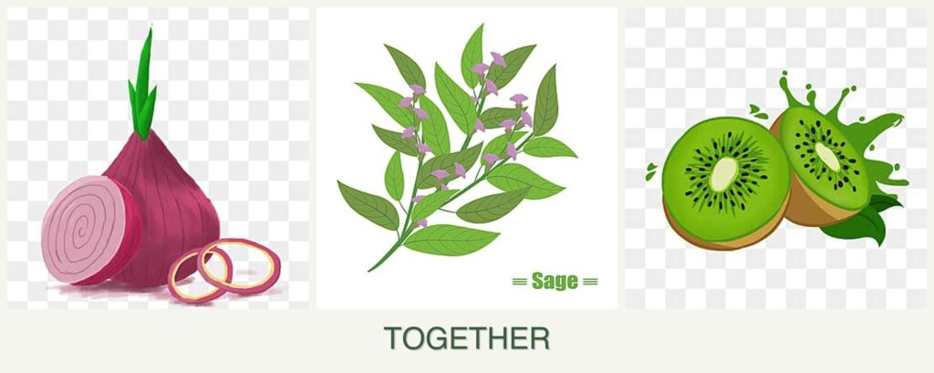 While onions, sage, and kiwi may not be perfect companions, planting onions and sage together can offer benefits: