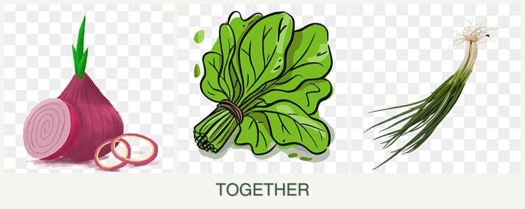 - Pest Control: Onions and chives emit strong scents that repel common garden pests, offering natural protection to spinach.