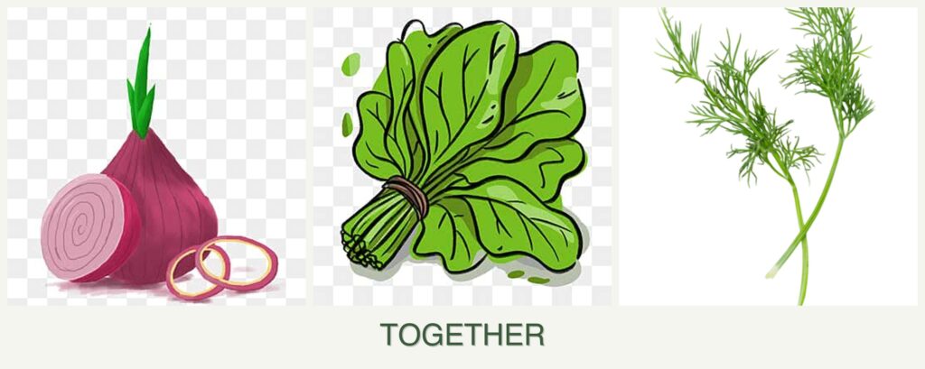 - Pest Control: Onions deter pests like aphids, which can benefit spinach and dill.