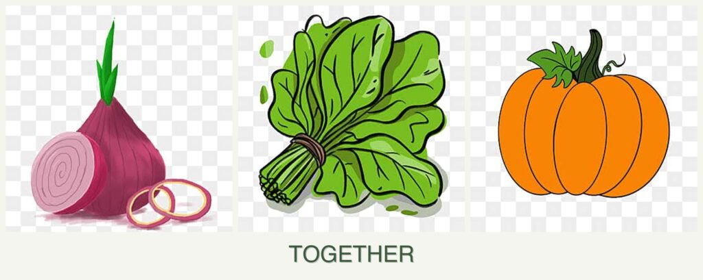 Can onions, spinach, and pumpkin be planted together? Yes, they can be planted together, but with some considerations. These plants have different growth habits and requirements, which can complement each other when managed correctly.