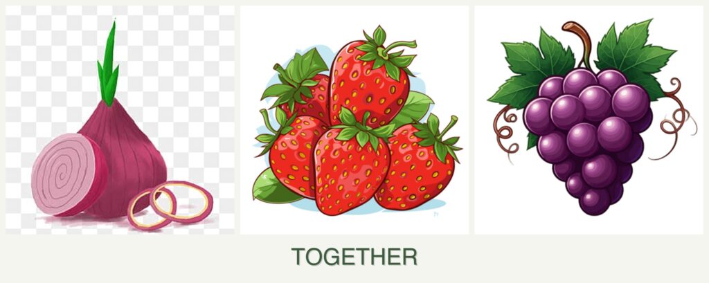 - Pest Control: Onions can deter some pests, but strawberries and grapes attract different insects, which might not be repelled by onions.