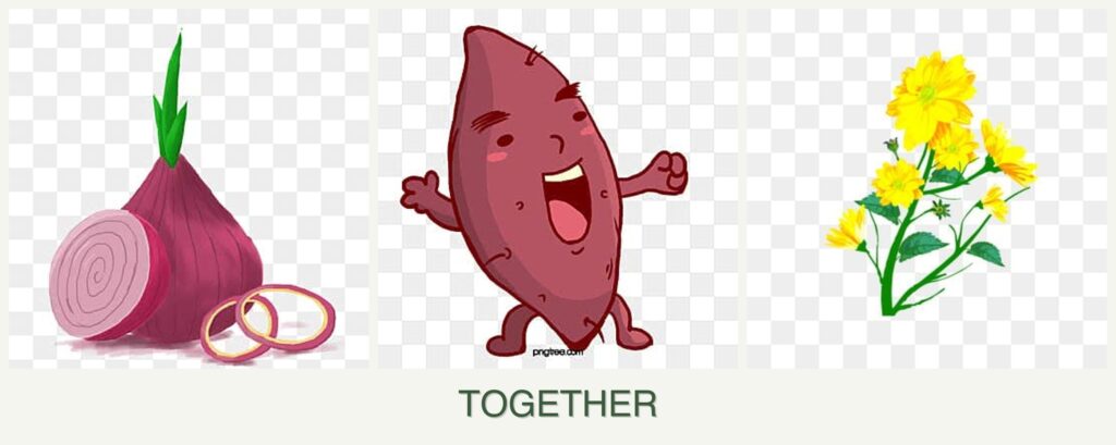 - Pest Control: Onions deter pests that might otherwise harm sweet potatoes and calendula.