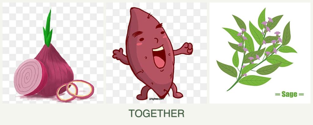Planting onions, sweet potatoes, and sage together offers several benefits:
