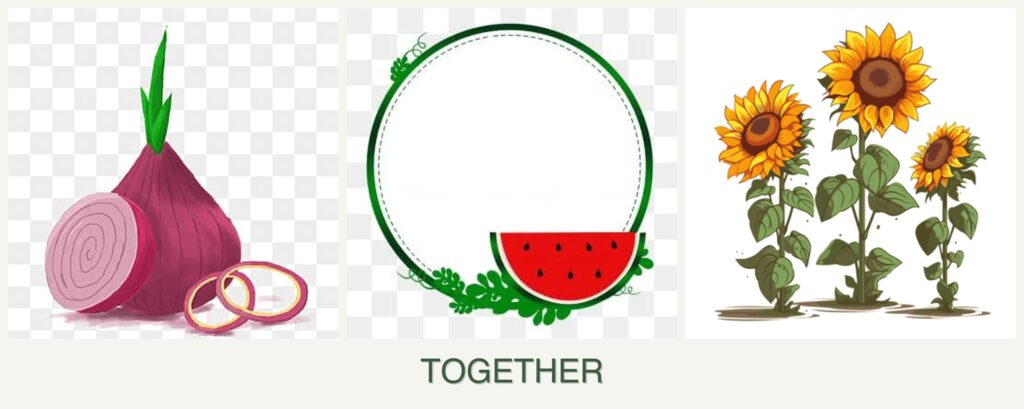 Planting onions, watermelons, and sunflowers together can offer several advantages: