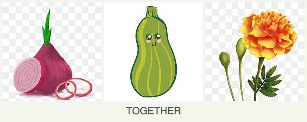 Planting onions, zucchini, and marigolds together offers several benefits: