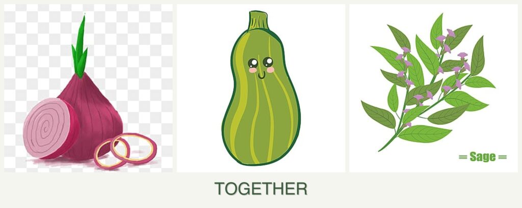 Improved Flavor and Growth: Sage can enhance the flavor of zucchini, while onions contribute to soil health by deterring soil-borne pests.
