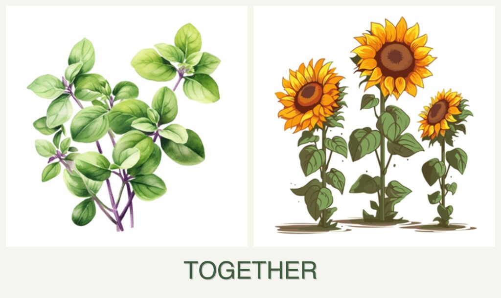 - Oregano can enhance the flavor of nearby plants, but it won’t negatively affect sunflowers.