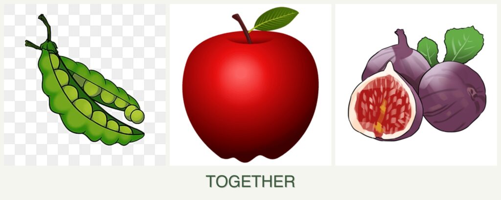 - Pest Repellent Properties: Peas can attract beneficial insects that help control pests on apples and figs.