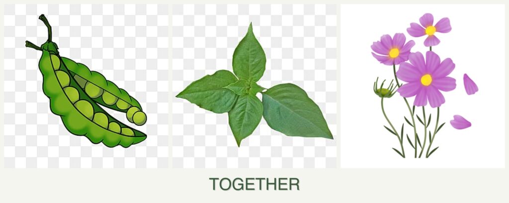 - Improved Growth: Peas enrich the soil with nitrogen, promoting healthy growth for basil and cosmos.