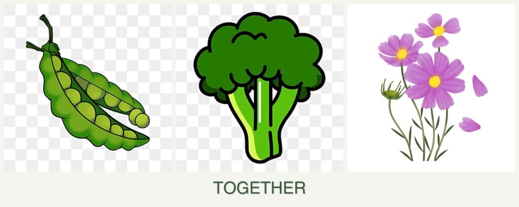- Nutrient Needs: Peas improve soil nitrogen levels, benefiting broccoli. Cosmos, being less nutrient-demanding, won’t compete heavily.