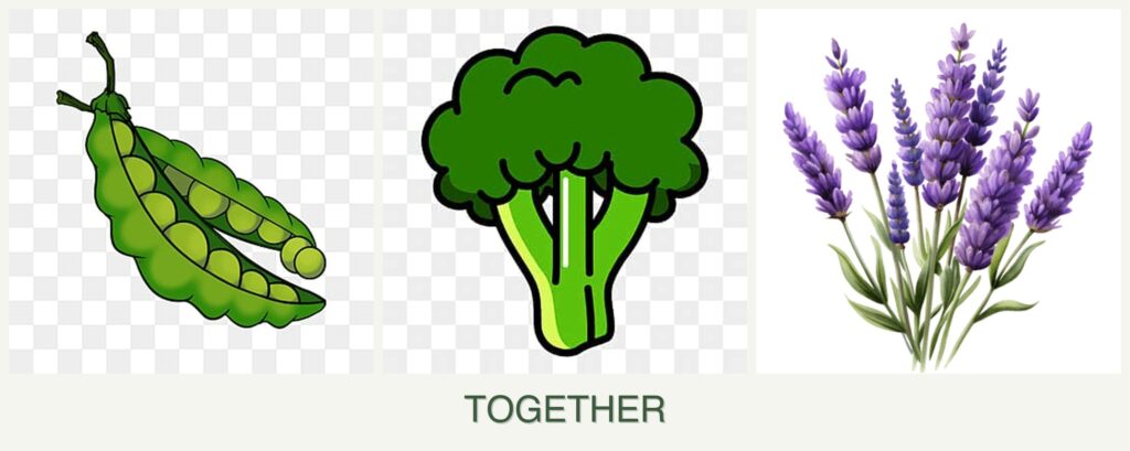 - Nutrient Needs: Peas improve soil nitrogen, benefiting broccoli but not significantly impacting lavender.