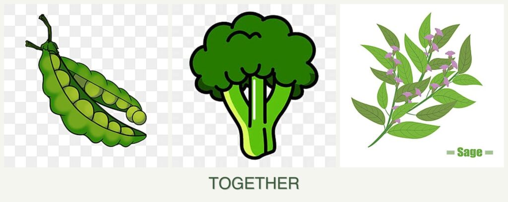 - Growth Requirements: Peas and broccoli share similar sunlight and water needs, while sage prefers drier conditions. However, with careful watering, they can coexist.