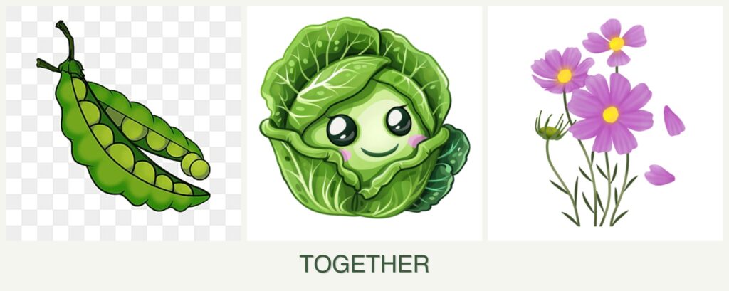 - Growth Requirements: Peas and cabbage both thrive in cooler temperatures, while cosmos prefers warmer weather, so timing is crucial.