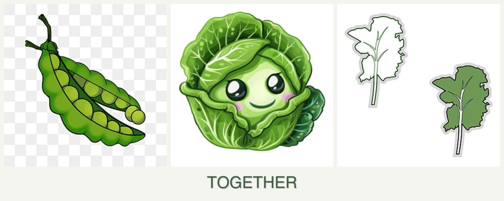 Planting peas, cabbage, and kale together offers several advantages: