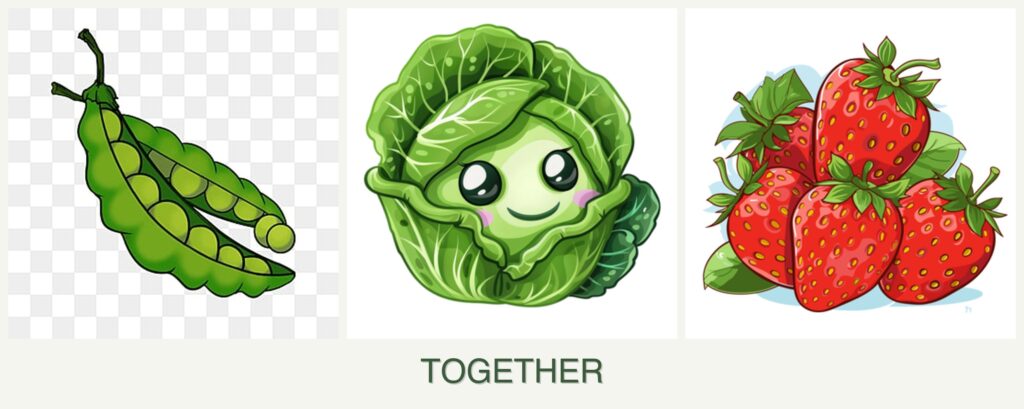 - Improved Flavor or Growth: Peas enrich the soil with nitrogen, promoting healthier growth for cabbage and strawberries.