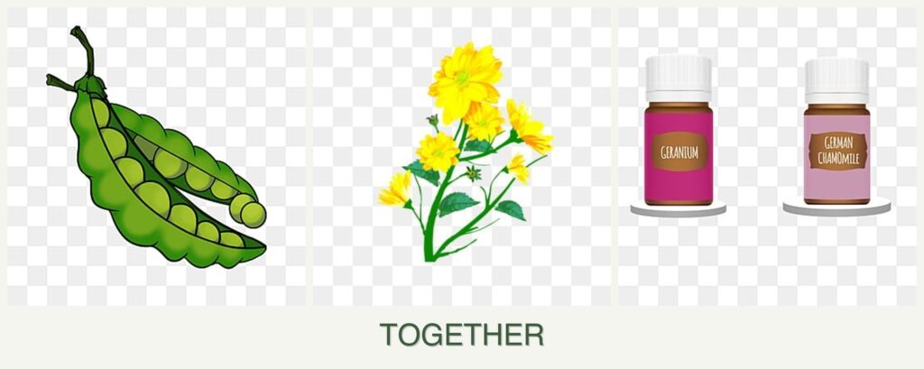 - Pollinator Attraction: Calendula and geraniums attract pollinators, boosting pea production.