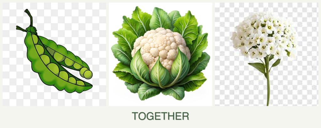 Planting peas, cauliflower, and alyssum together offers several benefits: