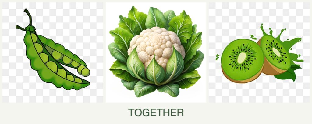 Can you plant peas, cauliflower, and kiwi together? The short answer is NO. While peas and cauliflower can be good companions, kiwi requires different growing conditions, making it unsuitable to plant alongside these vegetables.