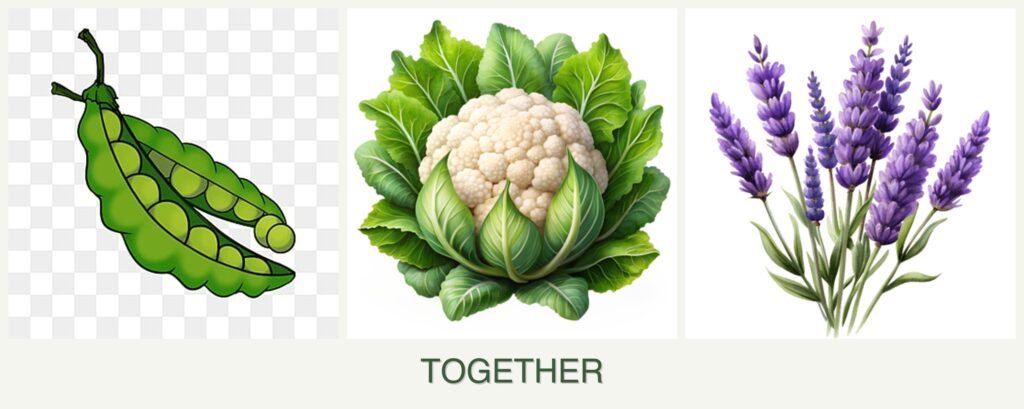 While lavender is not ideal for planting with peas and cauliflower, planting peas and cauliflower together offers several advantages: