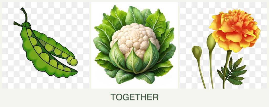 Planting peas, cauliflower, and marigolds together offers numerous benefits:
