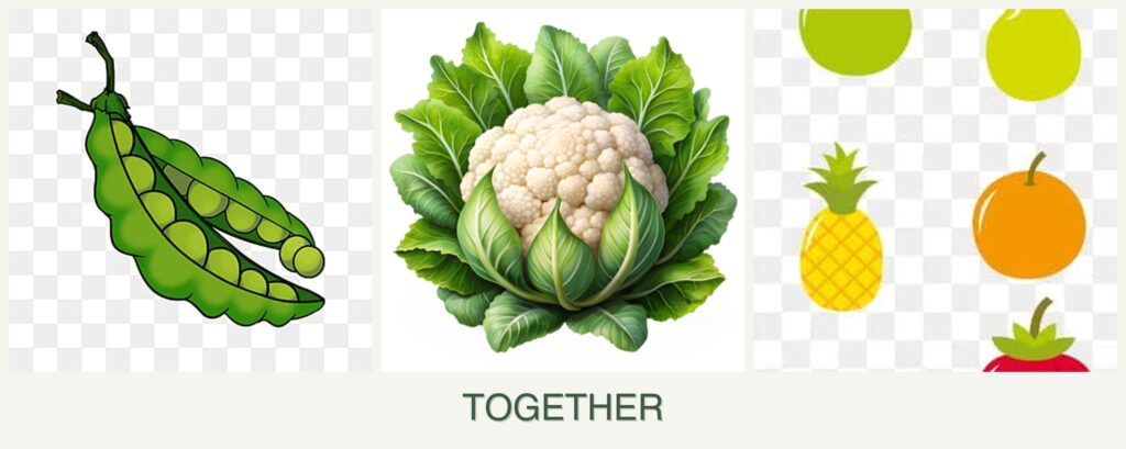 - Growth Requirements: Peas and cauliflower thrive in similar conditions, whereas pears need more space and different soil.
