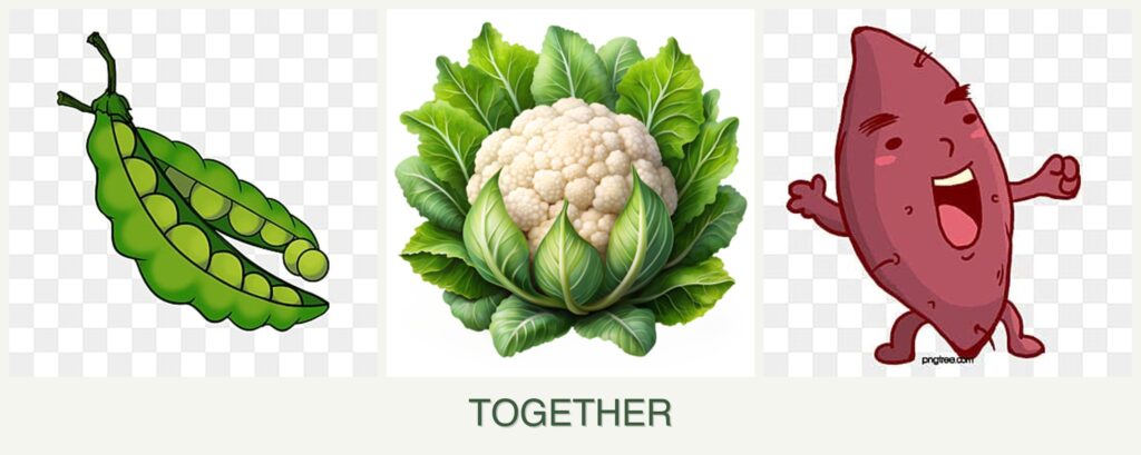 - Nutrient Needs: Peas fix nitrogen in the soil, benefiting cauliflower but not necessarily sweet potatoes, which have different nutrient needs.